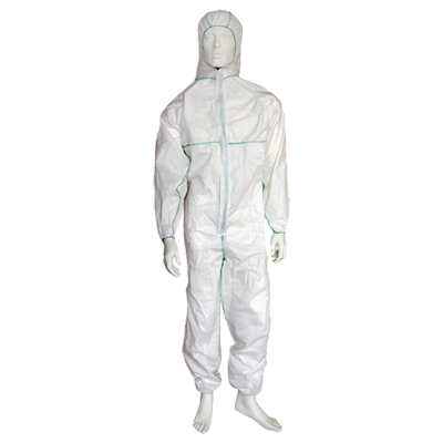 SMMS-Overall, Kapuze mit Kummizug, teißverschlußabeckung, Gummizug in der Taille sowie an Arm- und Beinabschlüssen, geprüft als Chemikailienschutzkleidung, antistatisch, atmungsaktiv.
