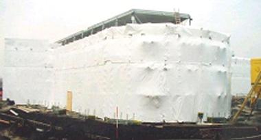 Perfekter Witterungsschutz, keine Flickstellen, flexibles Einplanen, einfaches Handling. Wird um das Gerüst herum verschrumpft. |