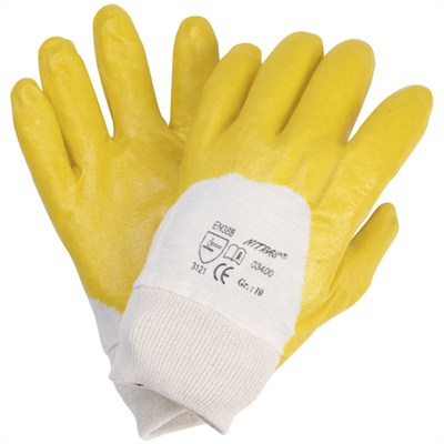 Nitrilhandschuh, gelb, teilbeschichtet auf BW-Trikot, mit Strickbund