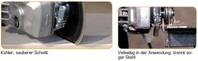 Auf Stein arbeitet sie durch ihre hohe Standzeit extrem wirtschaftlich. Ihre Leistungen auf Stahl machen Sie zum idealen Allrounder. Die ALLCUT ist gerade deshalb auch dann das ideale Werkzeug, wenn die konkreten Bearbeitungs-Anforderungen vorher noch nicht bekannt sind.