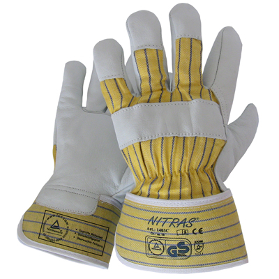 Rindvolllederhandschuhe, gelb, gestreifter BW-Rücken, Innenhandfutter,