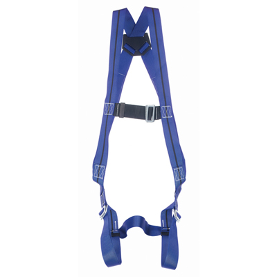 Einpunkt-Auffanggurt (D-Ring hinten) mit Standardverschlüssen und einstellbaren Beinschlaufen. |