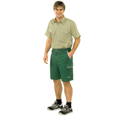 Tascheneingriffen und Taschenpatten, links Oberschenkeltasche mit Patte und Druckknöpfen, darauf aufgesetzte