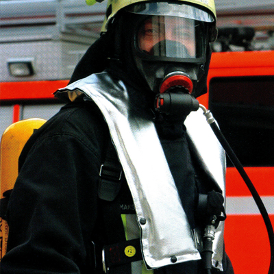 Schutzhülle aus Preox / Para-Aramid-Gewebe, aluminisiert und flammwidrig nach DIN EN 394. Das Material der Schutzhülle ist zusätzlich geprüft gem. DIN EN 531:1998-09. Temperaturbeständig nach DIN EN 136 Nr. 5.3 und 5.5. Erprobt in der Feuerwehrkriechstrecke. GS geprüft. Sonderausführung für Atemschutzträger. Die Rettungsweste ist geeignet für die Verwendung von für die Feuerwehr zugelassenen Atemschutzgeräten und -masken gemäß unten aufgeführter Tabelle.