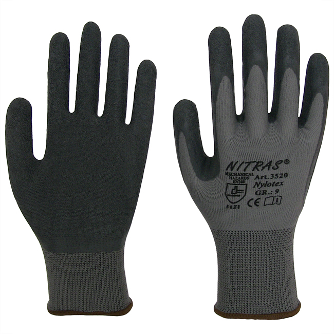 Nylon-Handschuhe, grau, mit schwarzer Latexbeschichtung auf Innenhand und Fingerkuppen