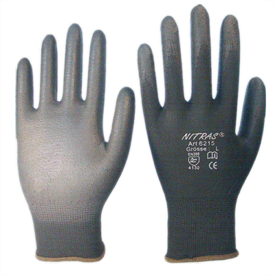 Nylon-Handschuhe, schwarz, schwarze PU-Beschichtung auf Innenhand und Fingerkuppen